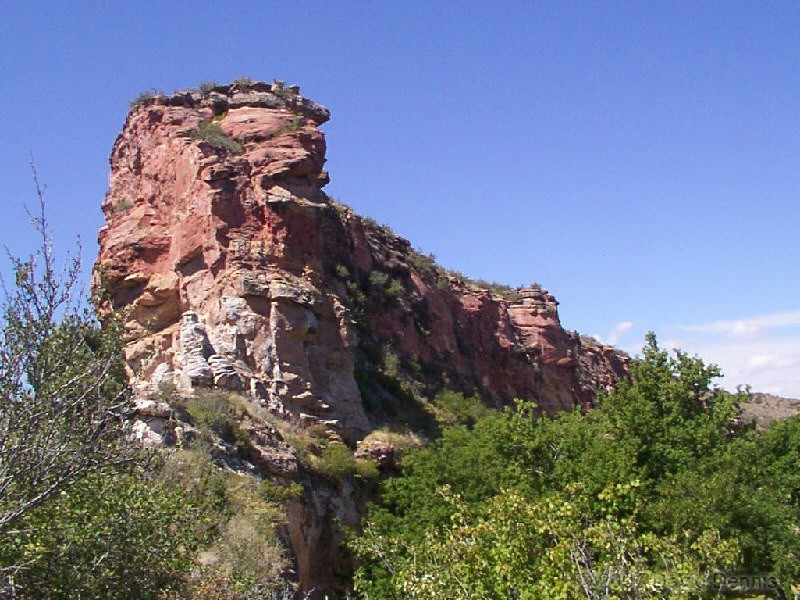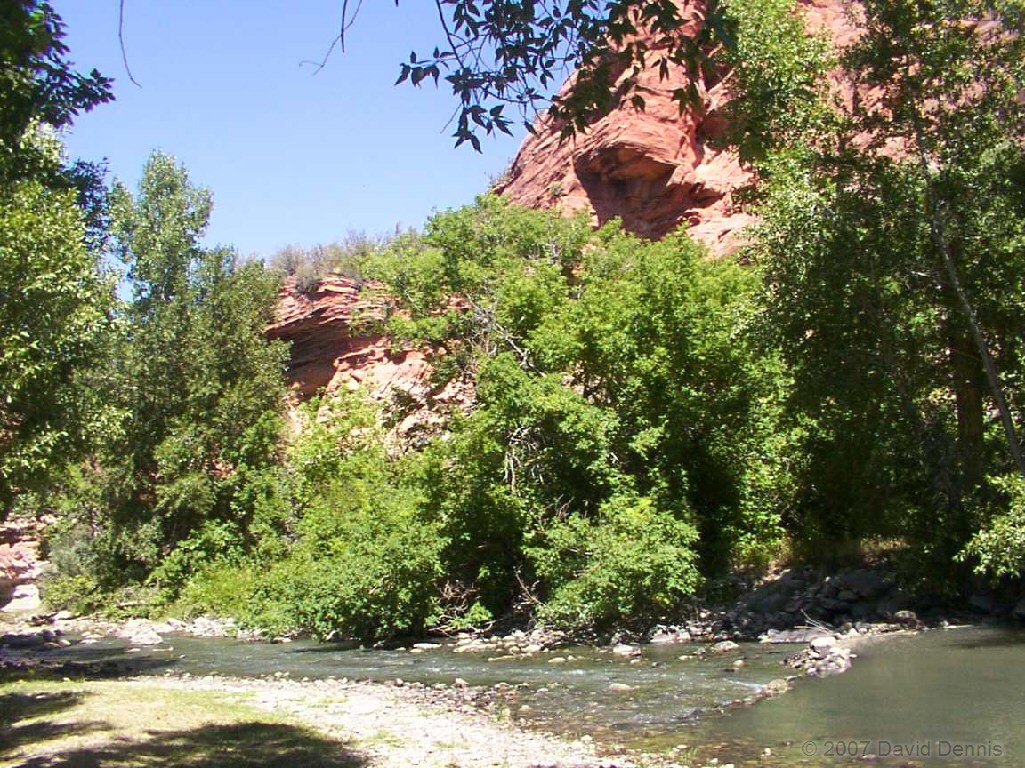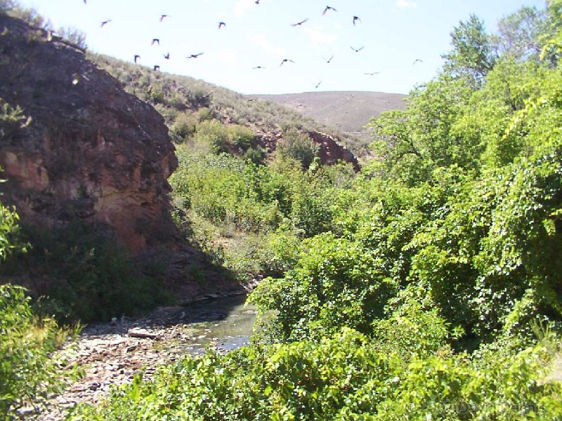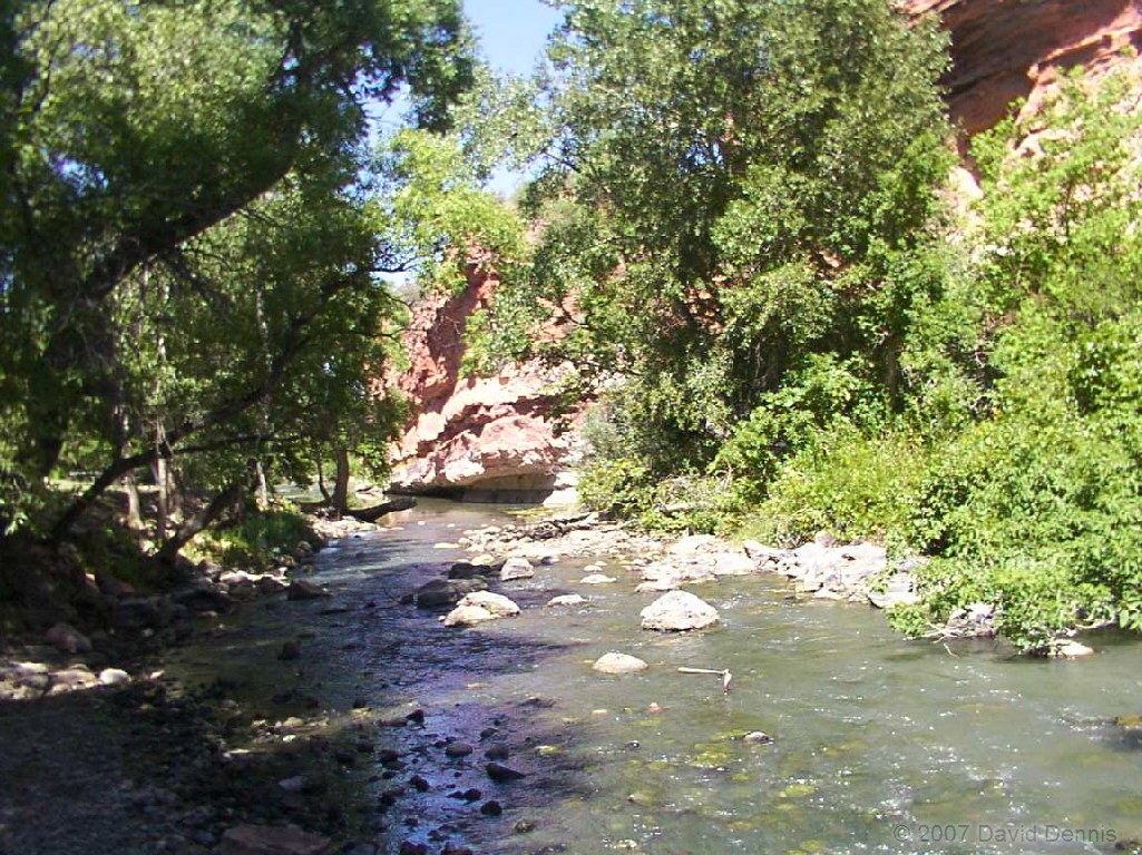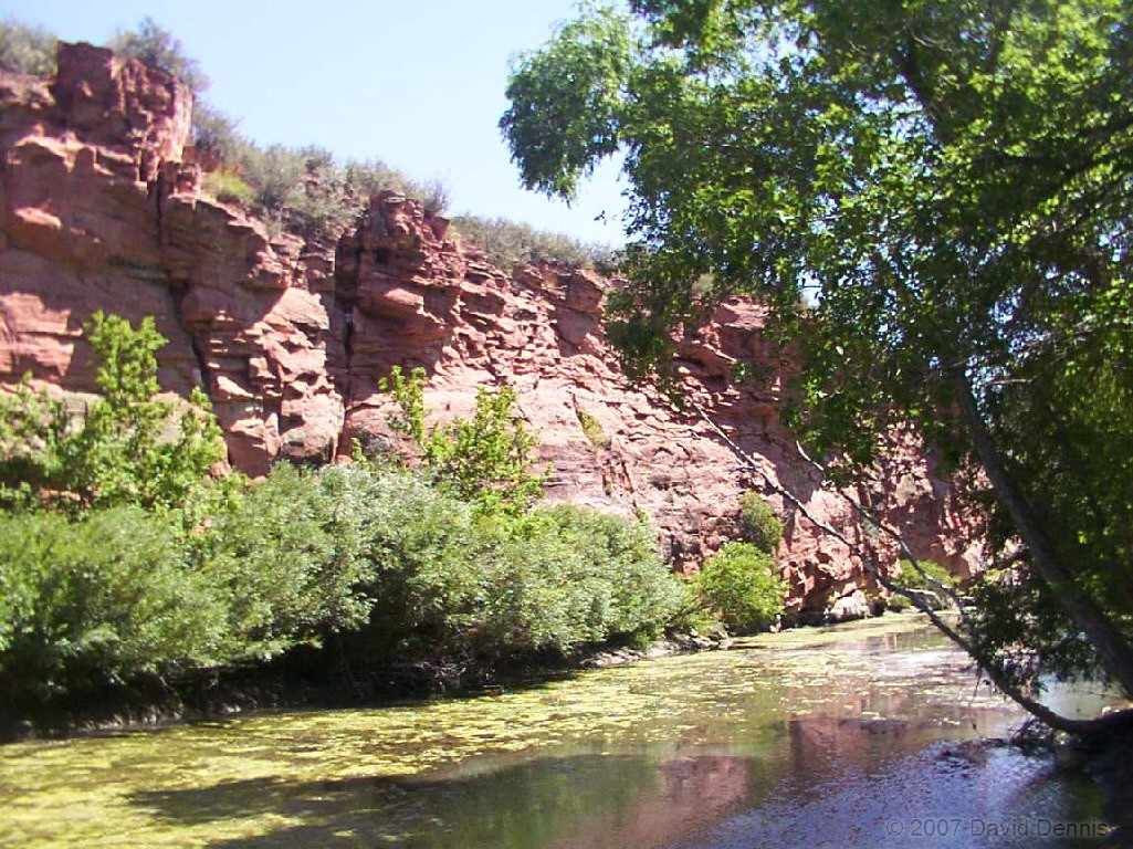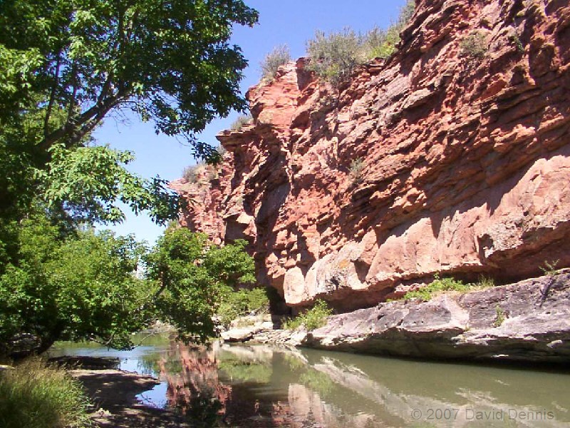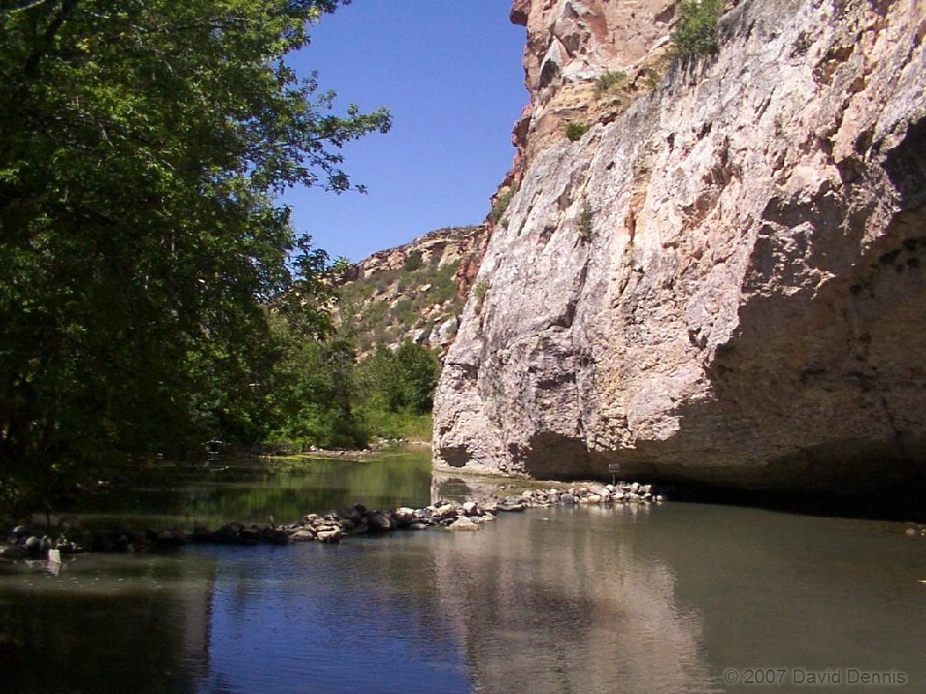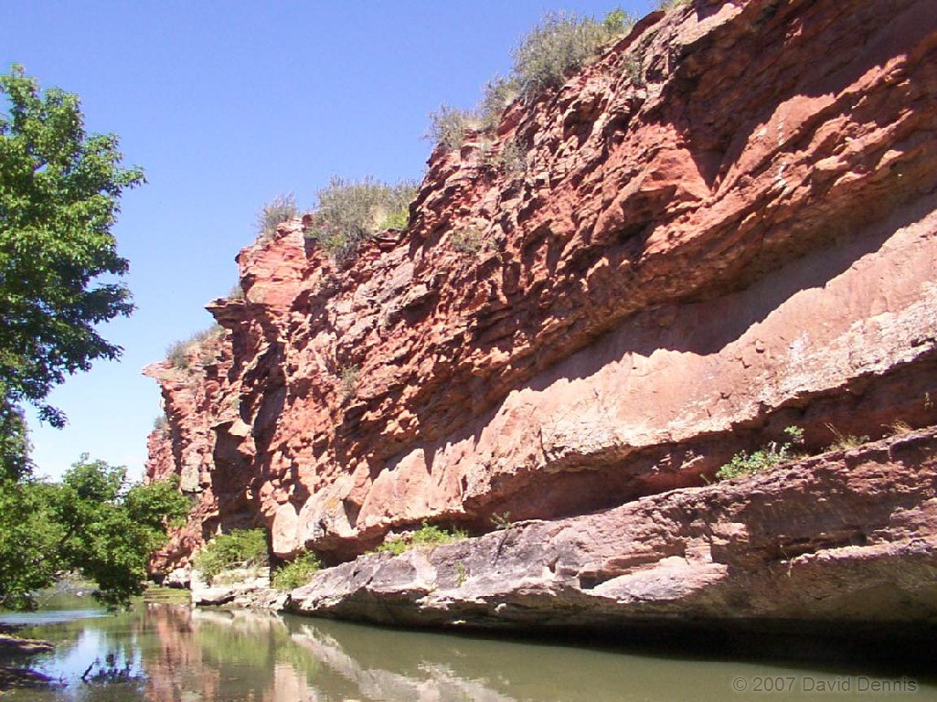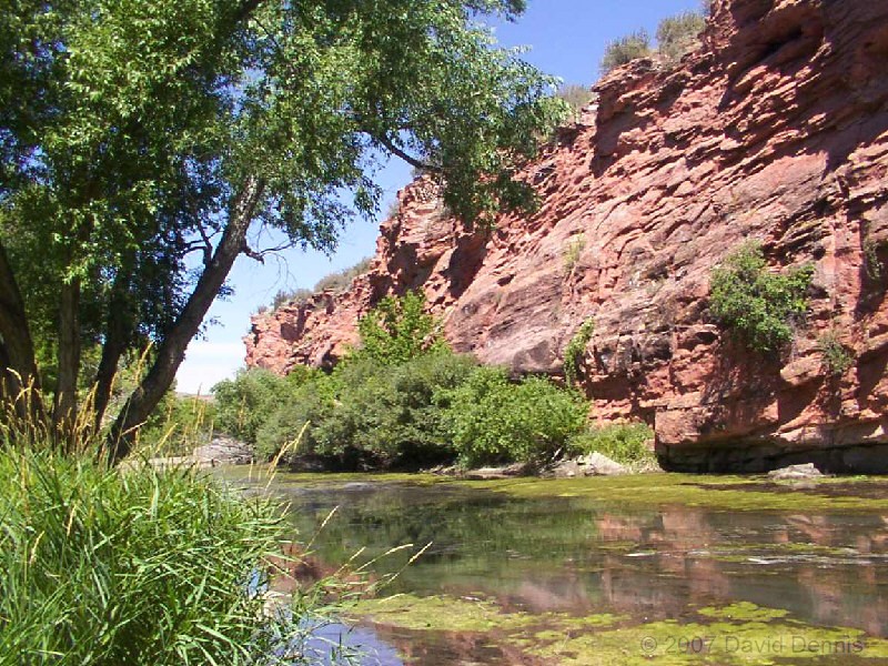 There photographs were all taken in Ayres Natural Bridge Park, Wyoming. The first five were taken on the August 6, 2002, and it was a generally overcast day. The shadows are weaker but the coloring of the rocks seems more distinct. The rest were taken two days later on August 8 in blue skies. I found this park to be a stunning place which is little known.