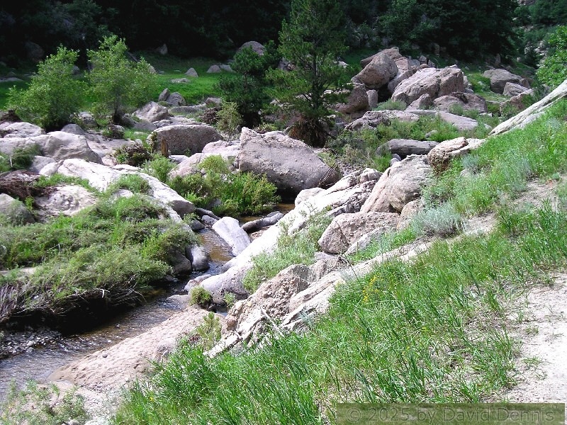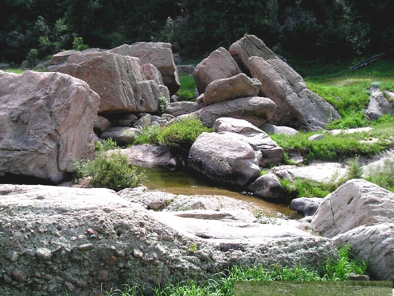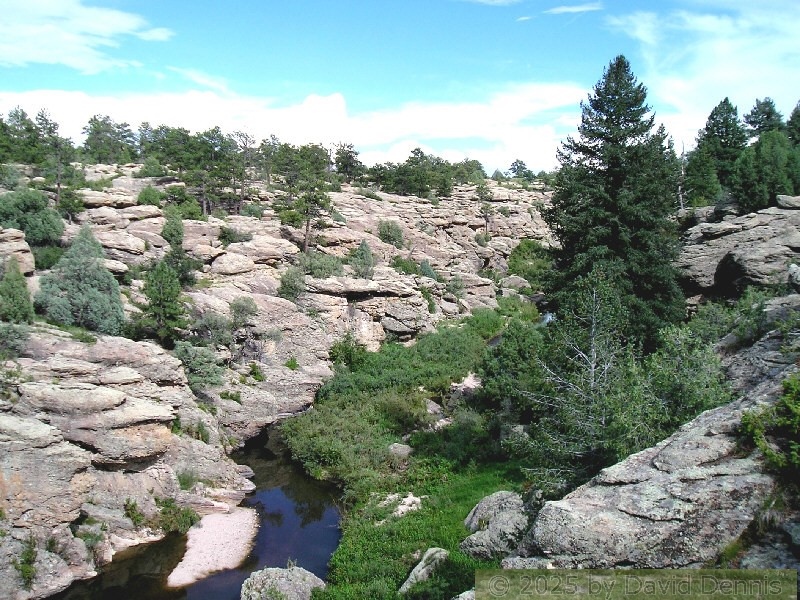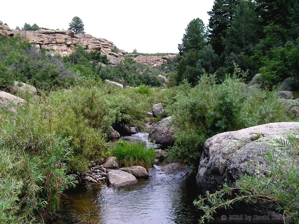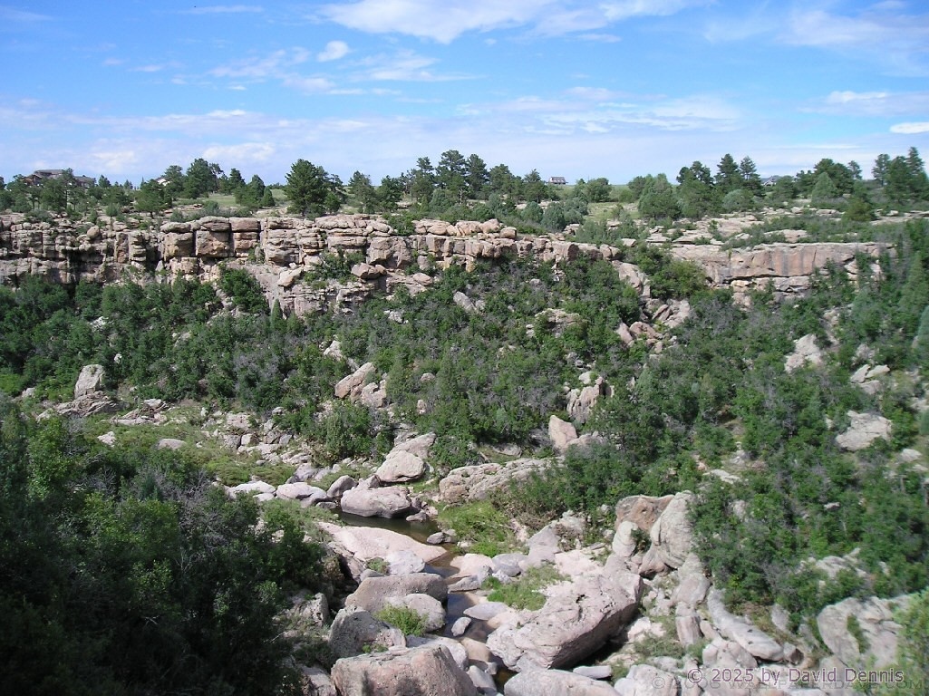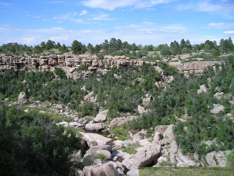 Tucked away just southeast of Denver is Castlewood Canyon State Park, through which flows Cherry Creek on its way to Denver. The highlight of this park is many miles of delightful hiking trails. These photographs were taken on August 12, 2006.
