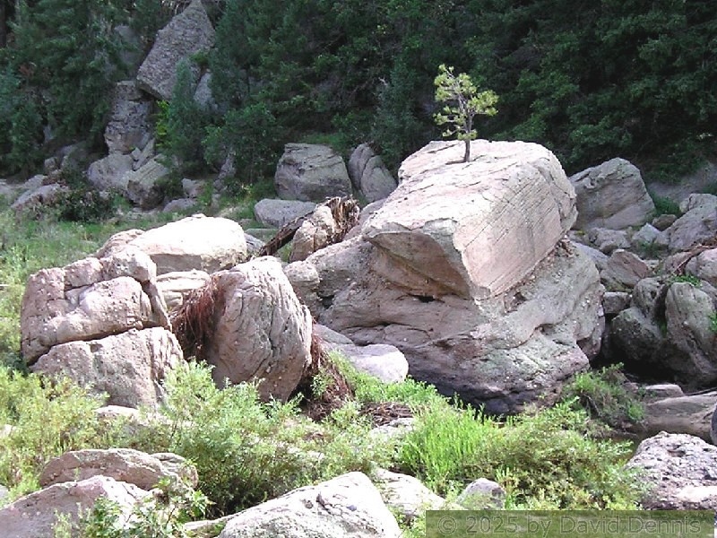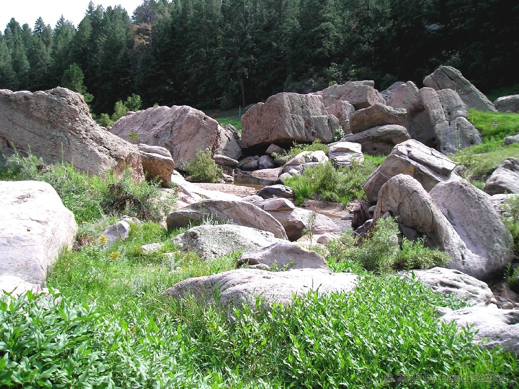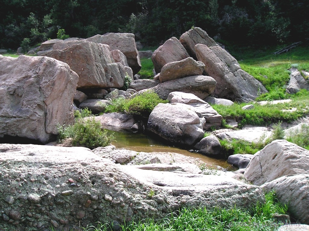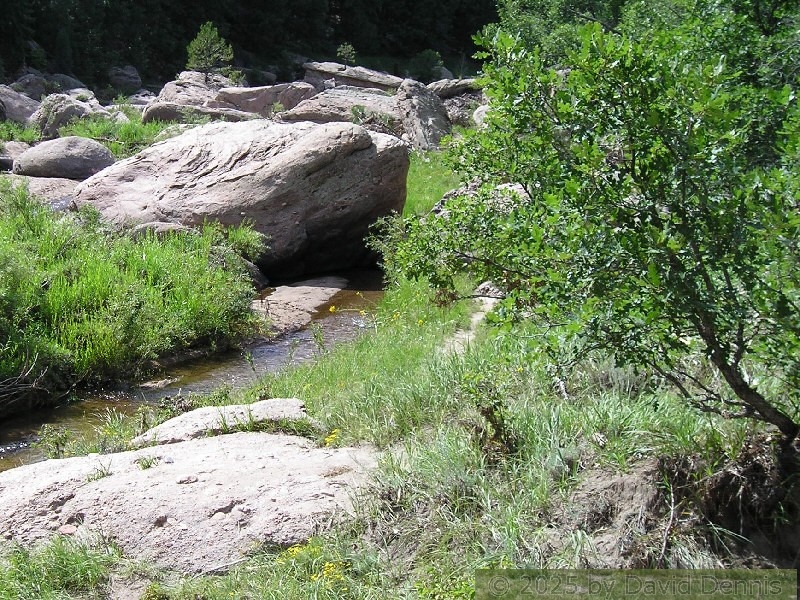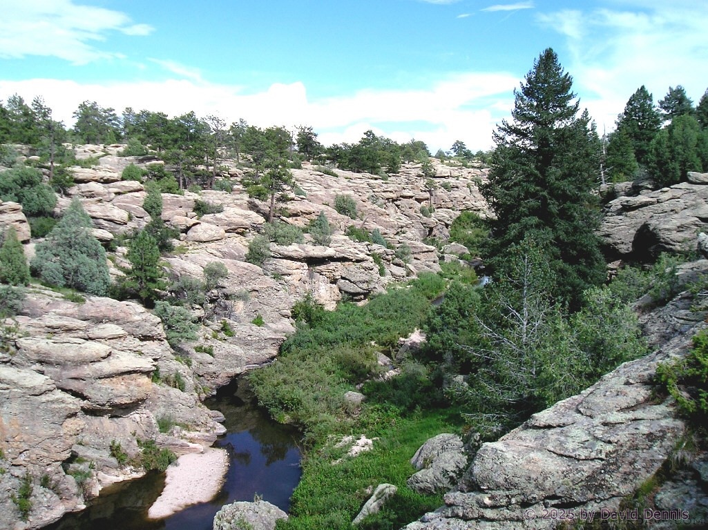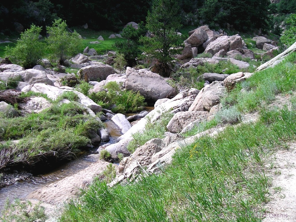 Tucked away just southeast of Denver is Castlewood Canyon State Park, through which flows Cherry Creek on its way to Denver. The highlight of this park is many miles of delightful hiking trails. These photographs were taken on August 12, 2006.