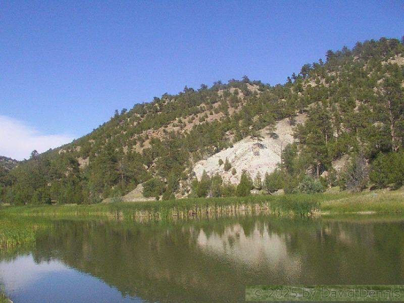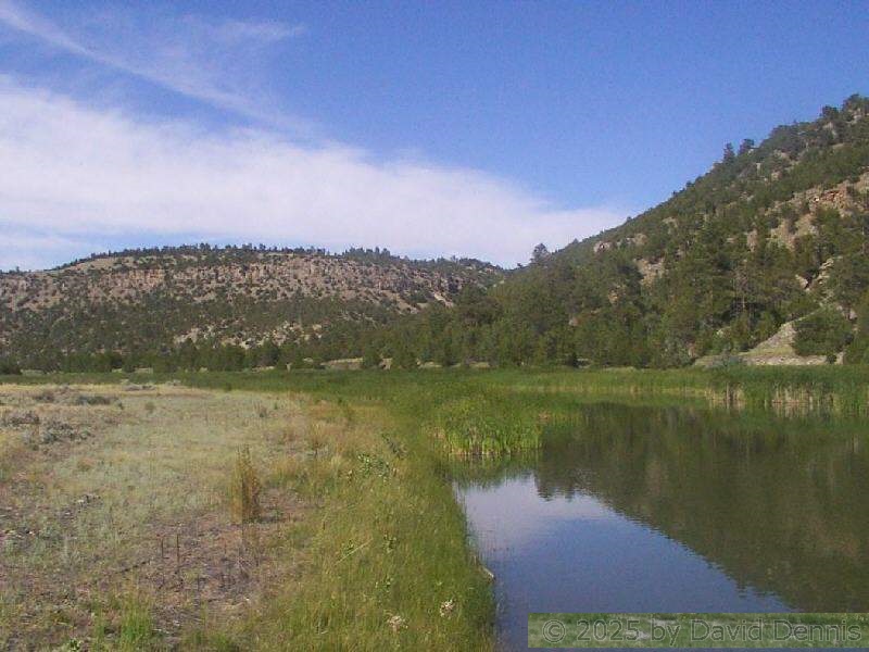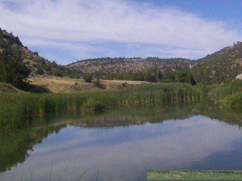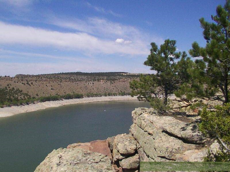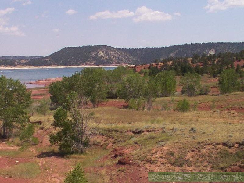There photographs were all taken in Glendo State Park, Wyoming on August 8, 2002. The water level was low because of a dry spring and summer. Only the first picture here is from Glendo Resevoir. The rest are pictures taken on a trail following the North Platte River below Glendo Dam. The scenery was great but the mosquitoes were hungry.