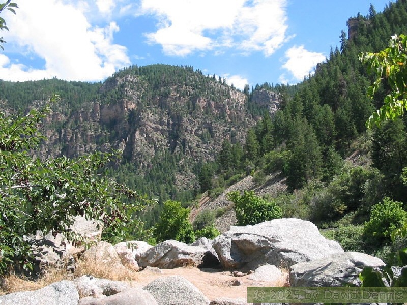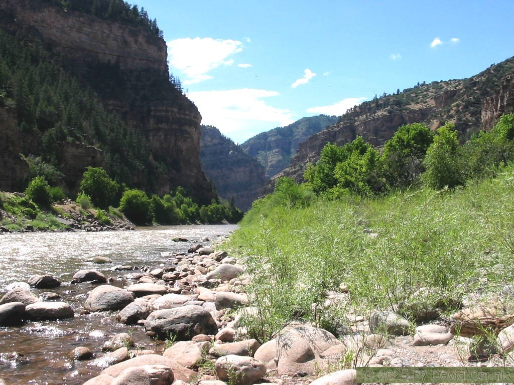 These nature photographs were taken from interstate highway exits along Glenwood Canyon, Colorado. They were taken in July 2005. Glenwood Canyon is a 16 mile section of the Colorado River through which Interstate 70 passes, along with a paved hiking and biking trail.