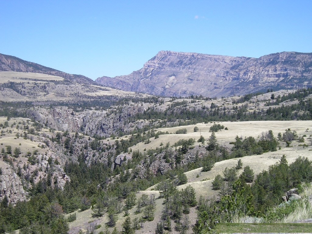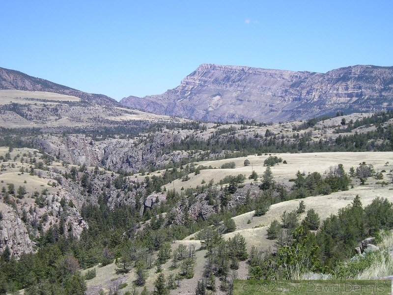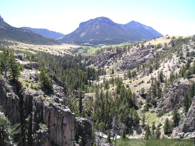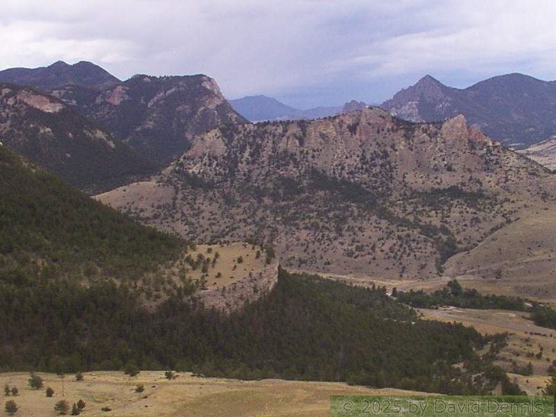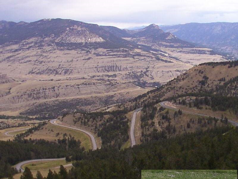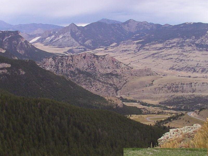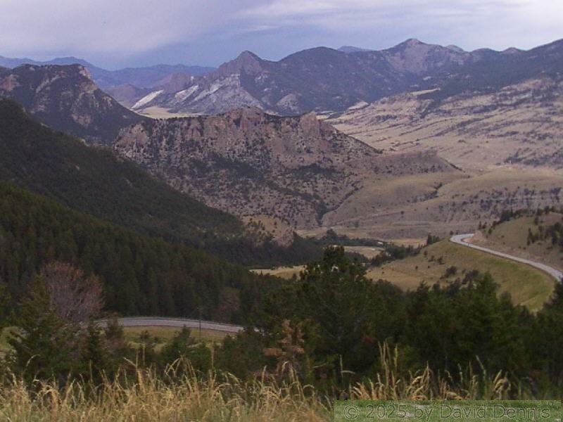 Leading south from the Beartooth Scenice Byway, Wyoming State Highway 296 has been named in honor of Chief Joseph, who led his Nez Perce Indians through this area in their famous flight for freedom. These pictures were taken on August 9, 2003. Unfortunately, the weather was gloomy, but the scenery was still great.