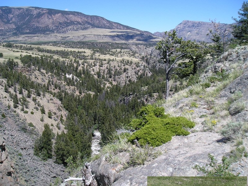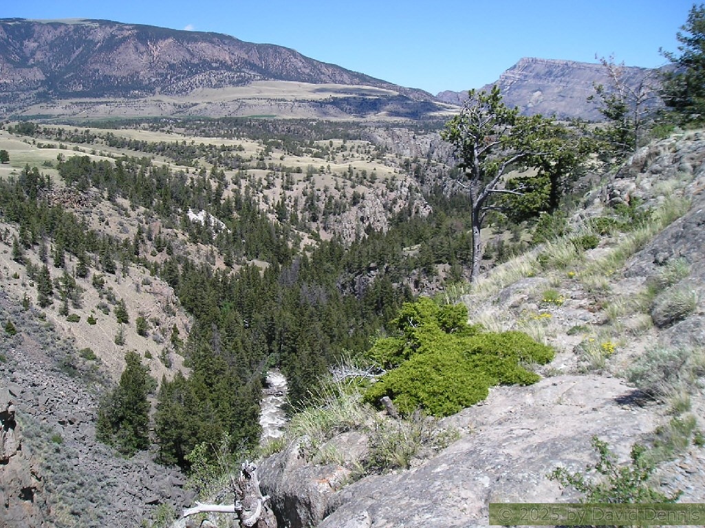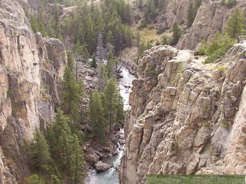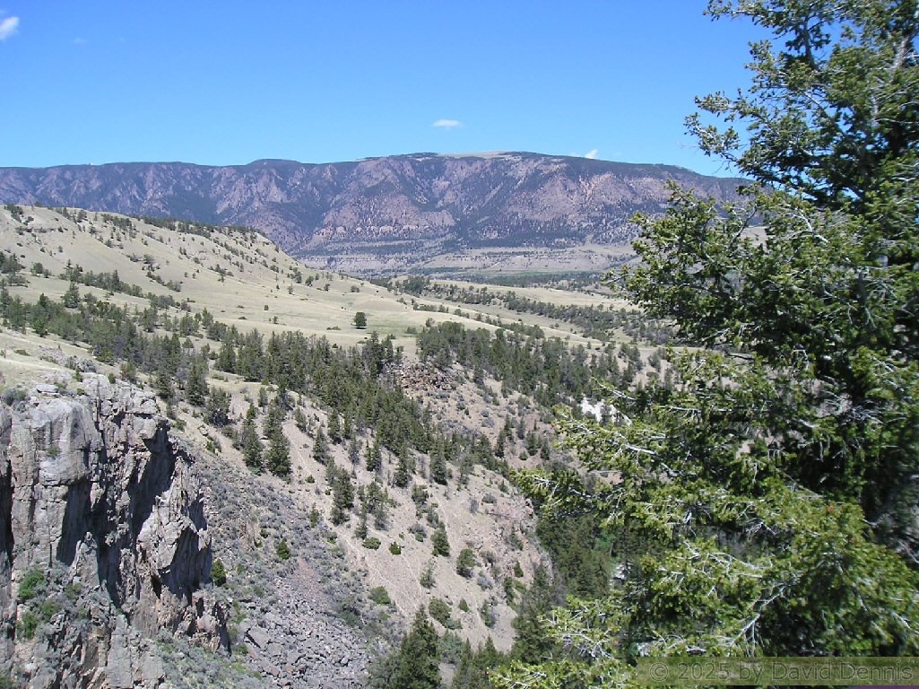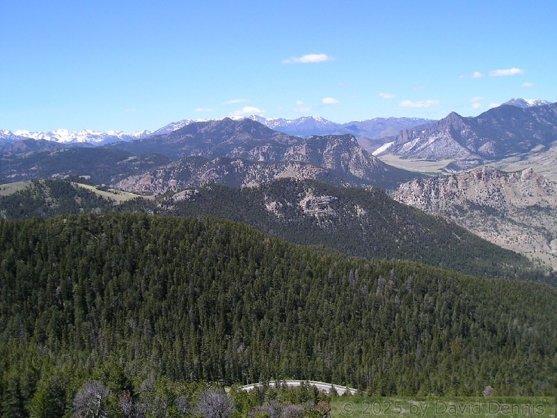 Leading south from the Beartooth Scenice Byway, Wyoming State Highway 296 has been named in honor of Chief Joseph, who led his Nez Perce Indians through this area in their famous flight for freedom. These pictures were taken on August 9, 2003. Unfortunately, the weather was gloomy, but the scenery was still great.