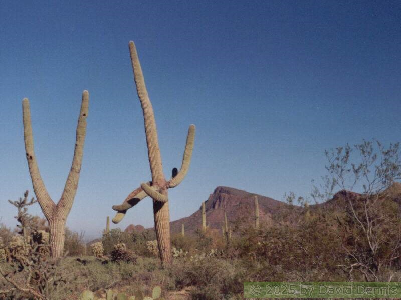 These pictures were taken in November, 2000 in the Tucson Mountain section, which is a much older Saguaro Forest. Many of the cacti here have multiple arms, and some have very interesting shapes.