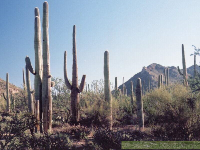 These pictures were taken in April, 2000 in the Rincon Mountain section, one of two units that make up the Saguaro National Park. The saguaro cacti grow as tall as 50 feet and live for up to 200 years. I found them to be very photogenic characters.
