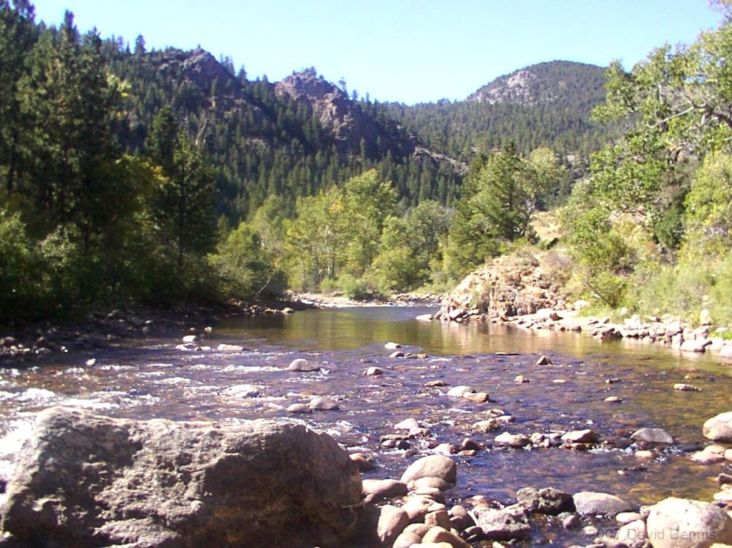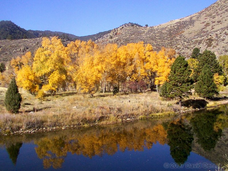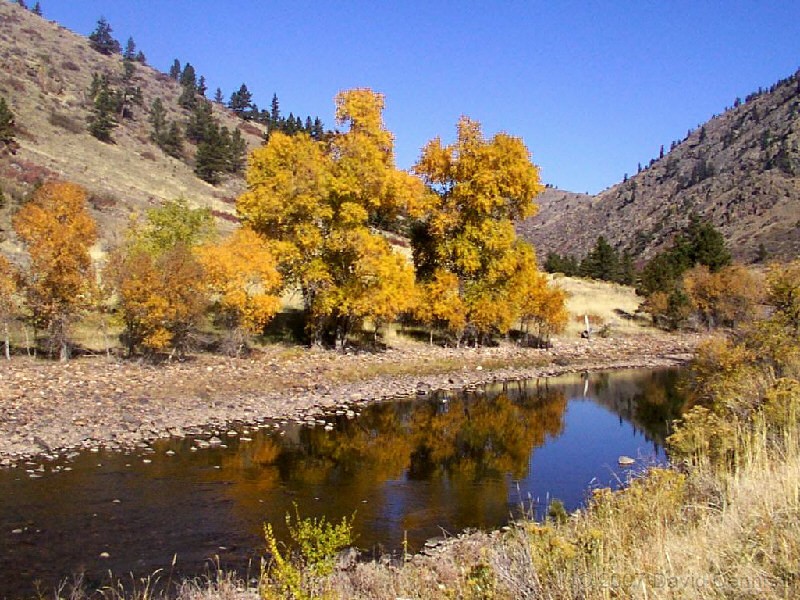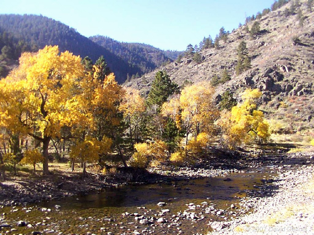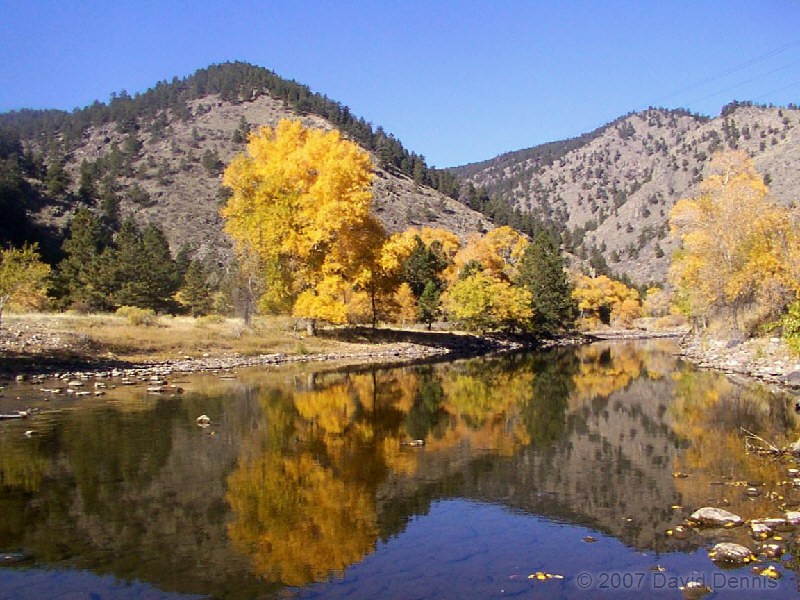 The Cache La Poudre River was named by trappers after a cache of gunpowder that had been stored there. It has been designated as a National Wild and Scenic River by the National Park Service. This first visit along the scenic byway took place on October 19, 2002. A dry spring and summer had left the river level significantly lower than usual, and allowed for some wonderful reflections. It was an excellent time to capture the fall colors.