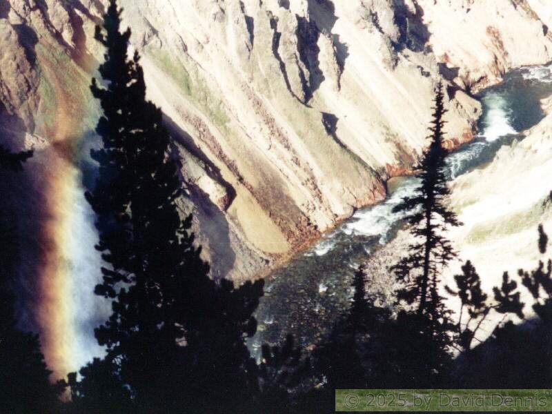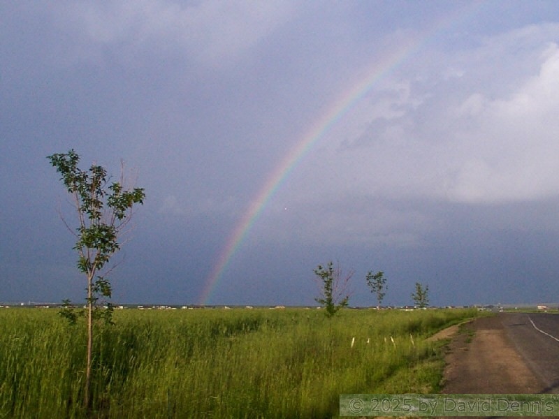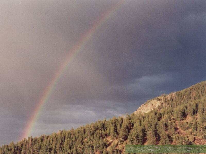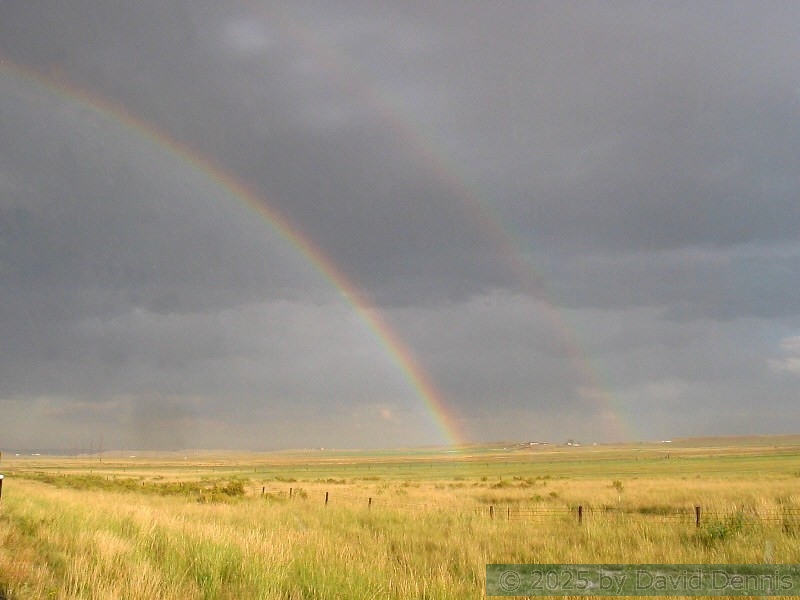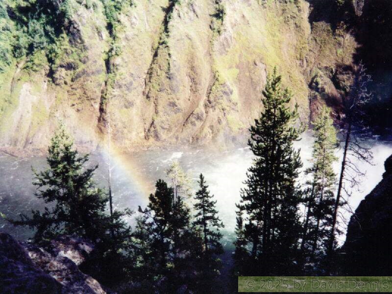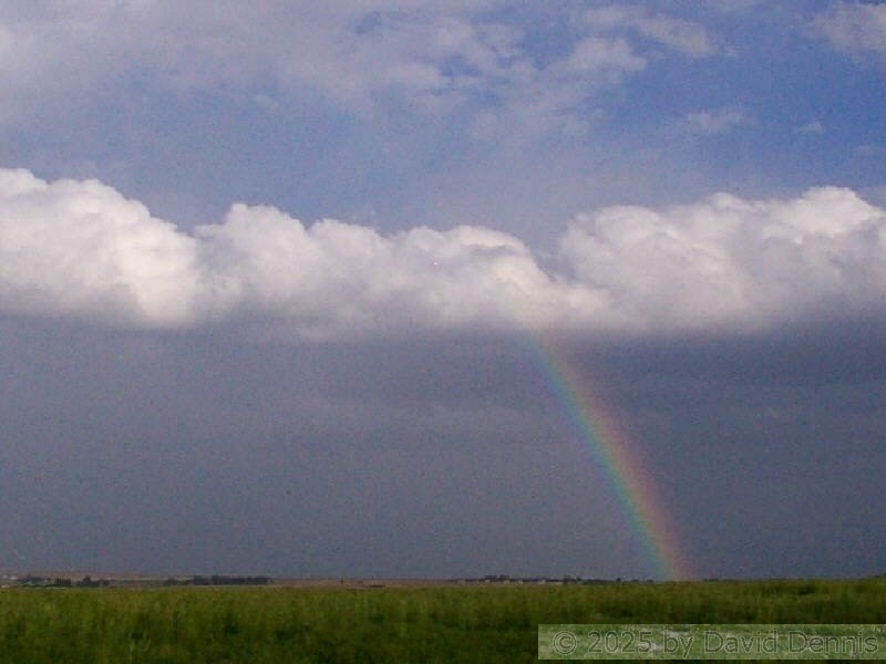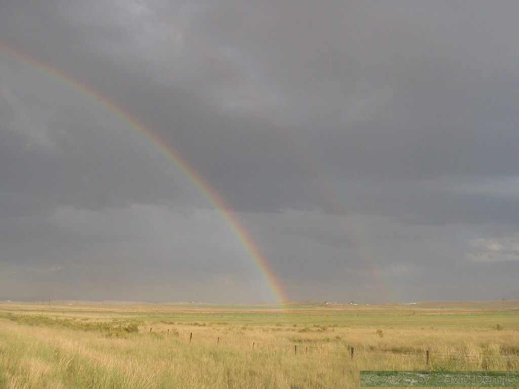 The first four rainbow photographs were taken in April, 2001 just off I-70 between Denver and Idaho Springs, Colorado. The next two rainbow pictures were taken on the plains in Eastern Colorado in May, 2001. The following three were taken near my home in Cheyenne, Wyoming. The last two photos were taken at the bottom of waterfalls in Yellowstone National Park.