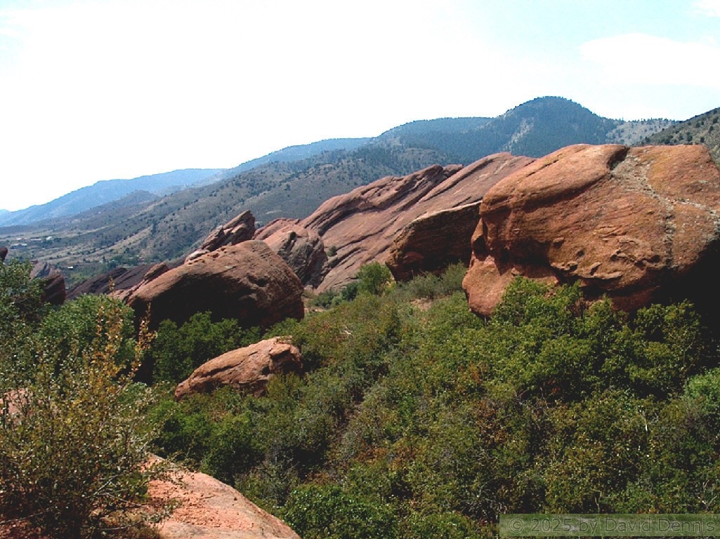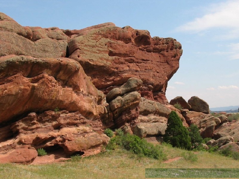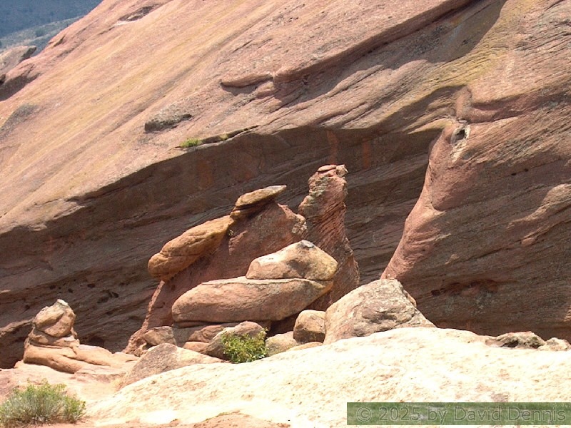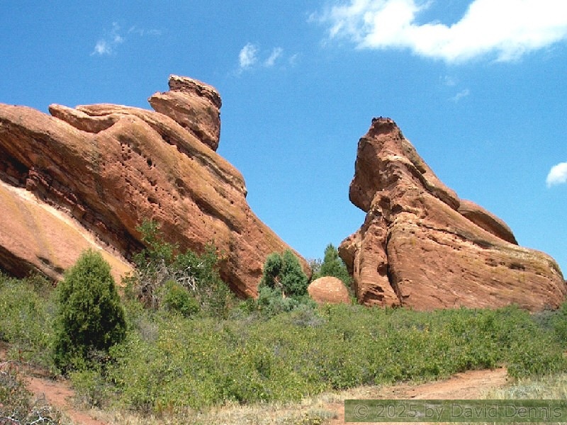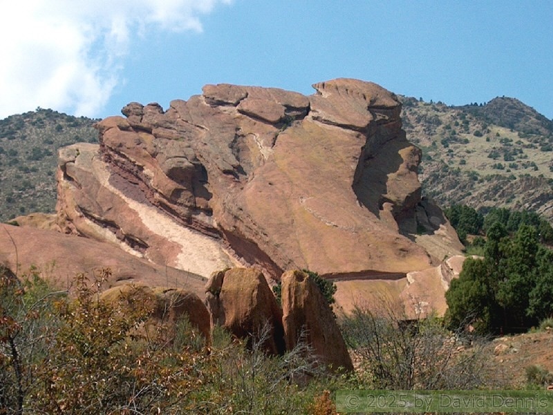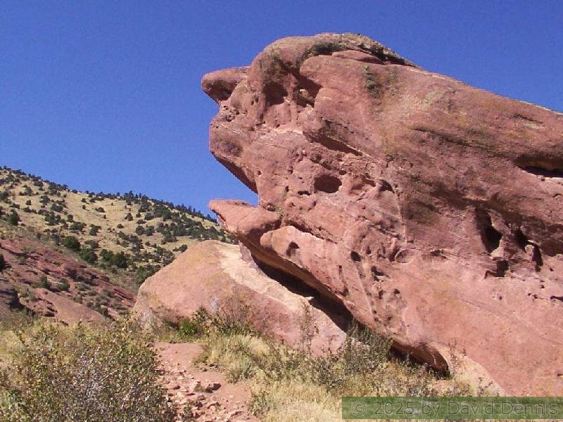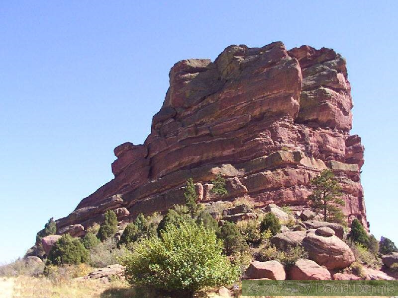 Red Rocks is a mountain park just west of Denver that is administered by the Denver Parks system. It can be found in the foothills, near Morrison, Colorado. Red Rocks is famous for the natural Amphitheather, where concerts are held regularly. But it is also a natural wonder of red sandstone rock formations. These pictures were taken on September 22, 2003.