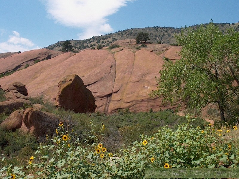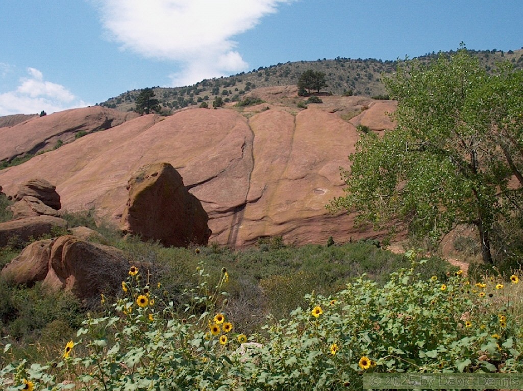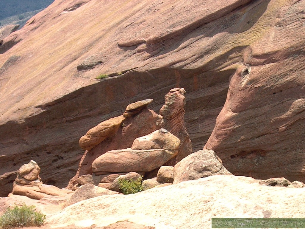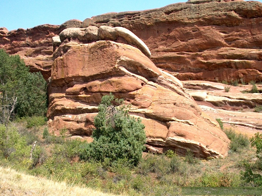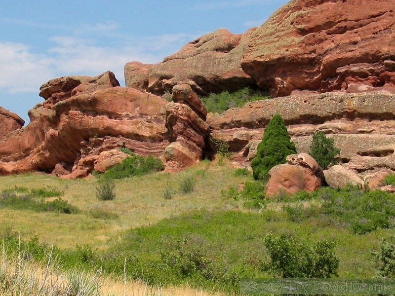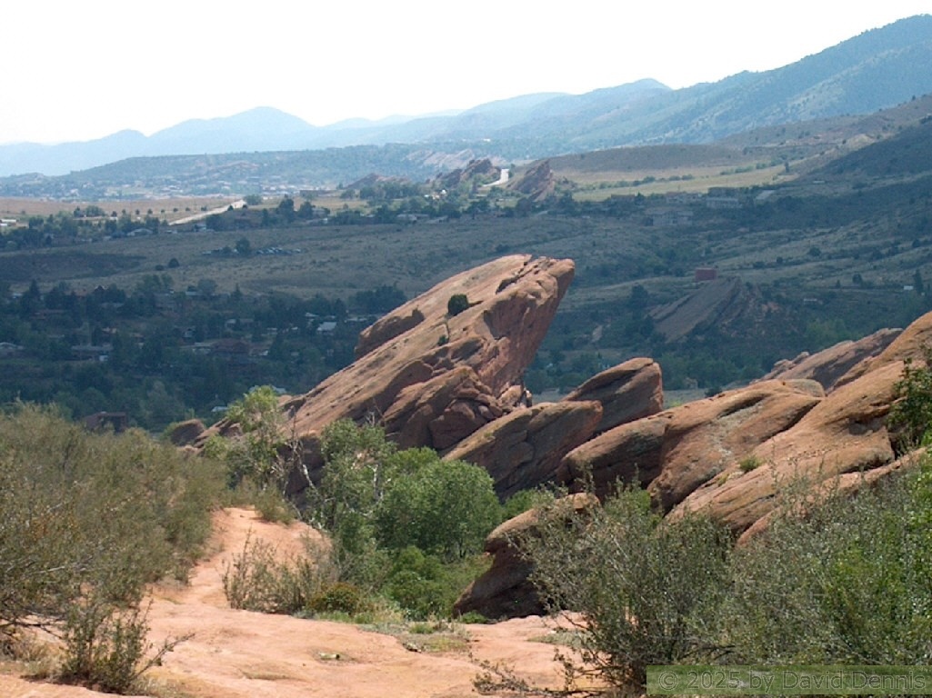 Red Rocks is a mountain park just west of Denver that is administered by the Denver Parks system. It can be found in the foothills, near Morrison, Colorado. Red Rocks is famous for the natural Amphitheather, where concerts are held regularly. But it is also a natural wonder of red sandstone rock formations. These pictures were taken on September 22, 2003.