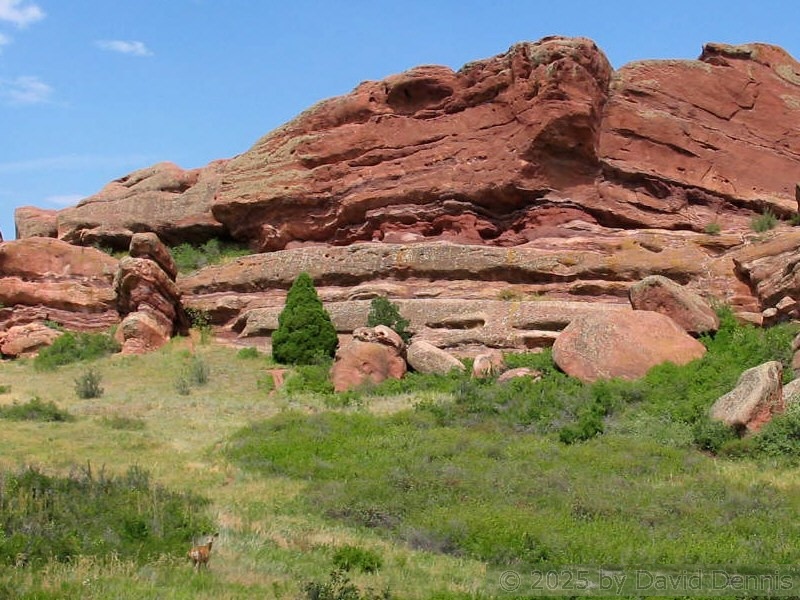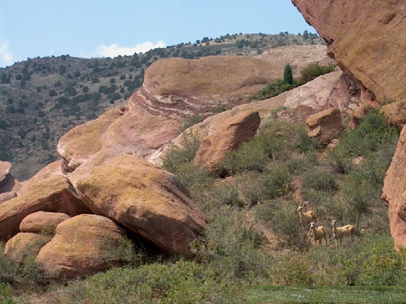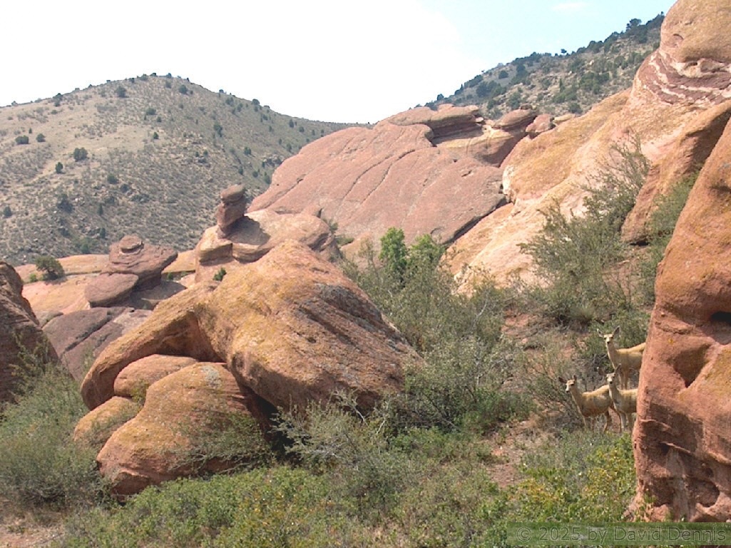 These pictures were taken on August 9, 2005 at about midday. It was a sunny day on the west and a cloudy day on the east. I hiked the loop trail through the center of the park. I was fortunate enough to get some pictures of deer in front of the rocks on the back half of the loop.