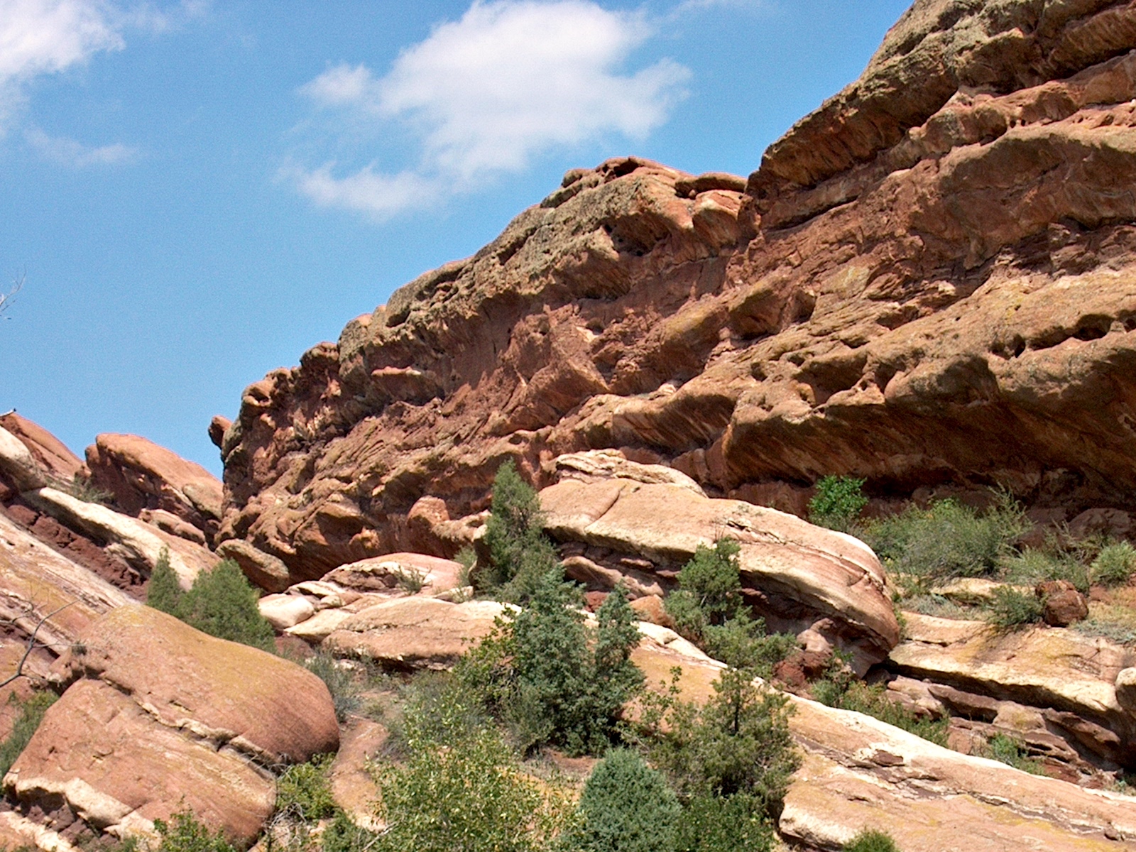 Red Rocks is a mountain park just west of Denver that is administered by the Denver Parks system. It can be found in the foothills, near Morrison, Colorado. Red Rocks is famous for the natural Amphitheather, where concerts are held regularly. But it is also a natural wonder of red sandstone rock formations.
