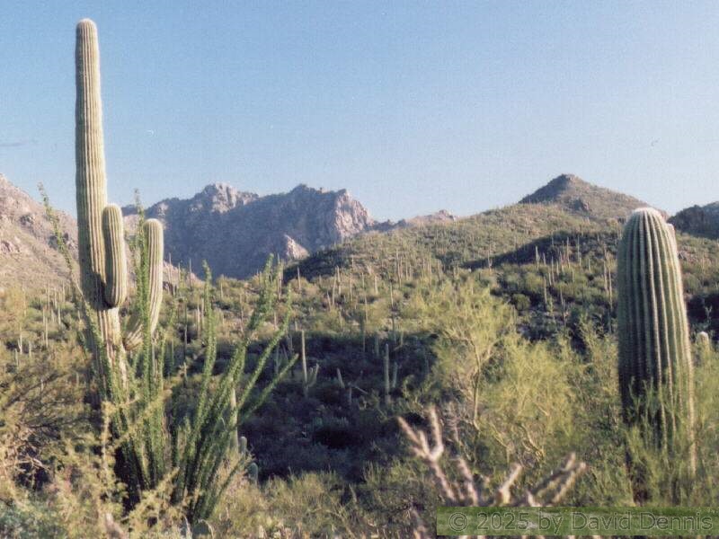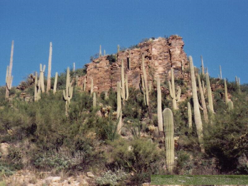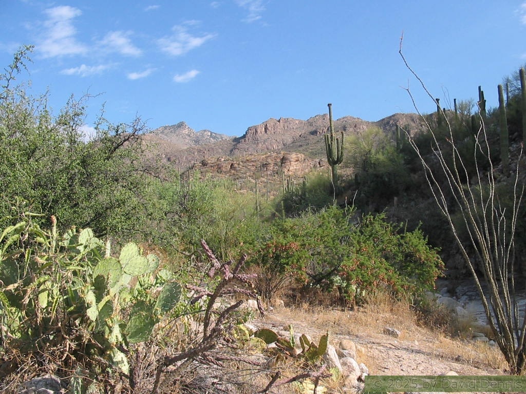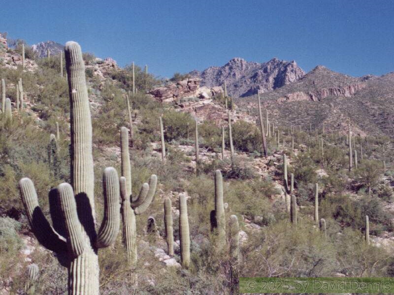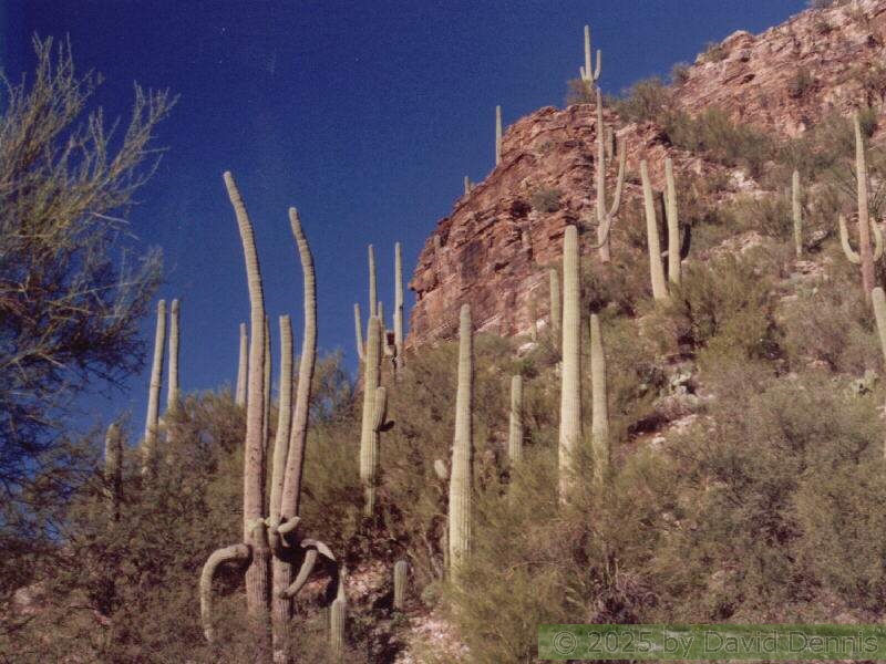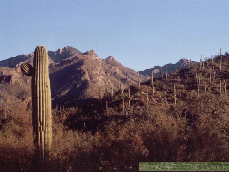 These pictures were taken in November, 2000 in Sabino Canyon. There is a three mile trail into the mountains with numerous other trails going off the main one. All access to this area is by hiking or paying to take a shuttle that runs in the area. I was quite fortunate to go in autumn when the trees were at their best. When you add autumn leaves, rivers, mountains and cactus, you come up with some very interesting pictures.