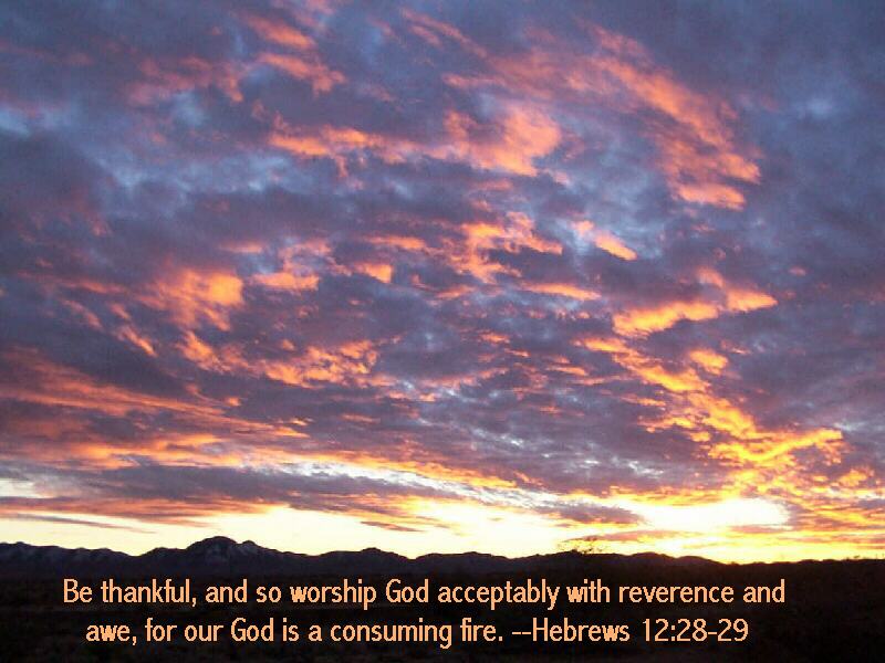 Be thankful, and so worship God acceptably with reverence and awe, for our God is a consuming fire. --Hebrews 12:28-29