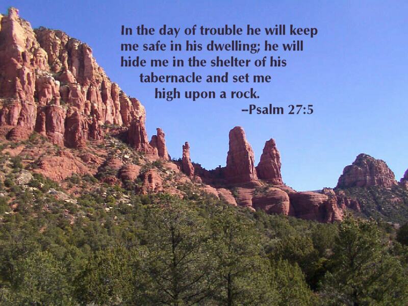 In the day of trouble he will keep me safe in his dwelling; he will hide me in the shelter of his tabernacle and set me high upon a rock. --Psalm 27:5 NIV