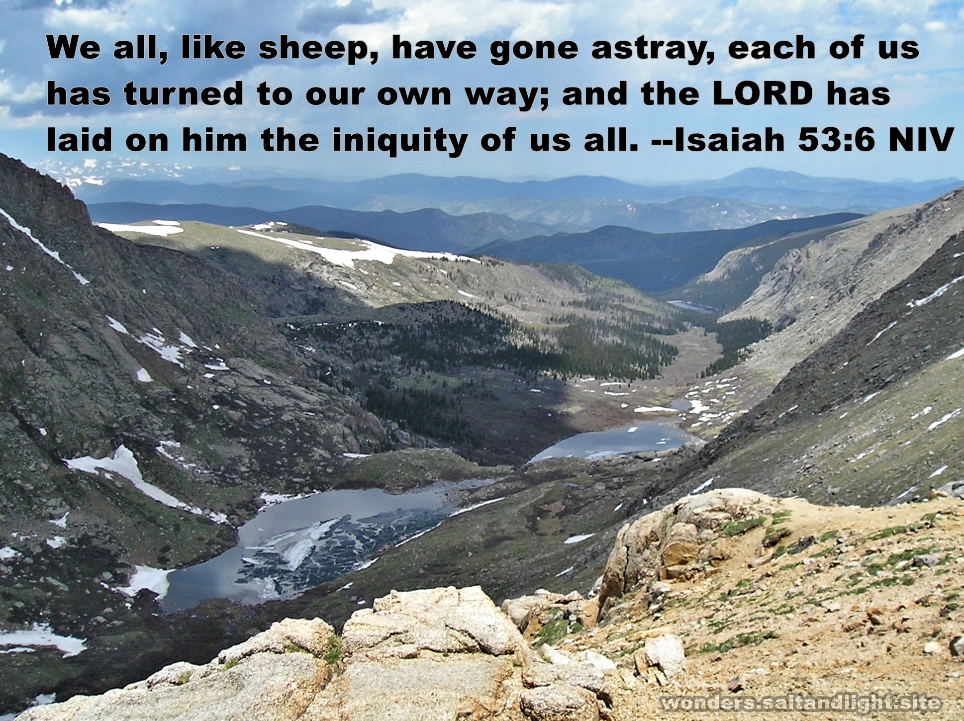 We all, like sheep, have gone astray, each of us has turned to our own way; and the LORD has laid on him the iniquity of us all. --Isaiah 53:6 NIV