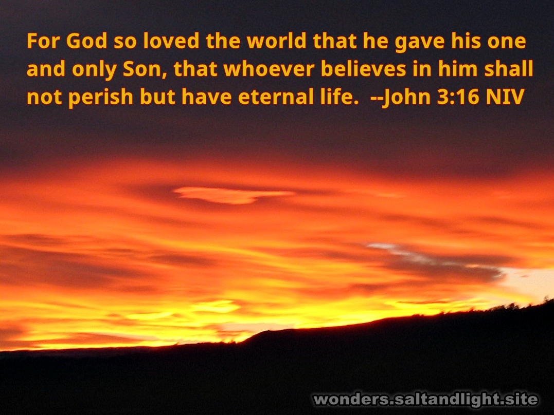 For God so loved the world that he gave his one and only Son, that whoever believes in him shall not perish but have eternal life. --John 3:16 NIV