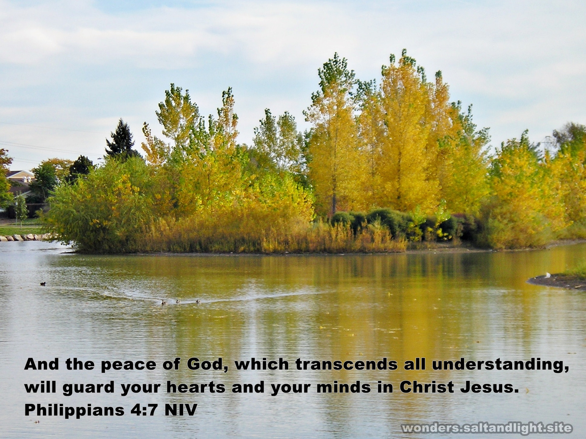 And the peace of God, which transcends all understanding, will guard your hearts and your minds in Christ Jesus. --Philippians 4:7 NIV