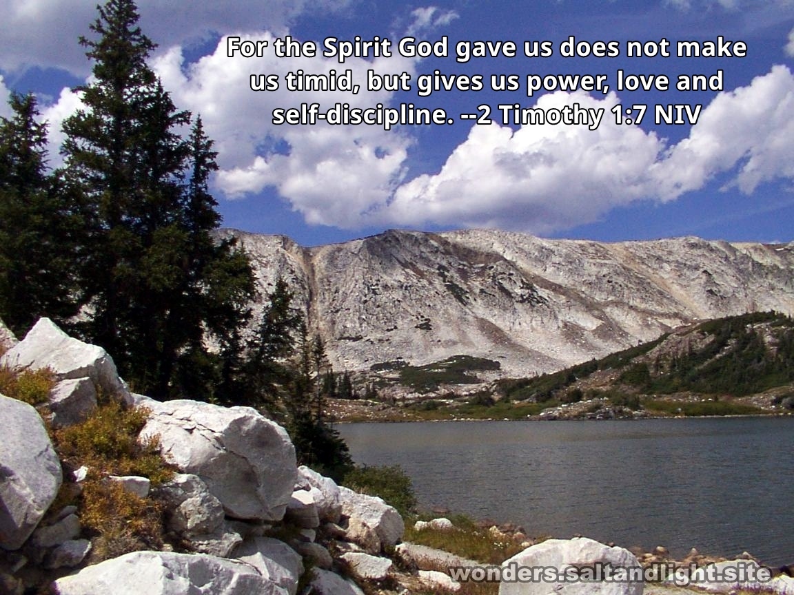 For the Spirit God gave us does not make us timid, but gives us power, love and self-discipline. --2 Timothy 1:7 NIV