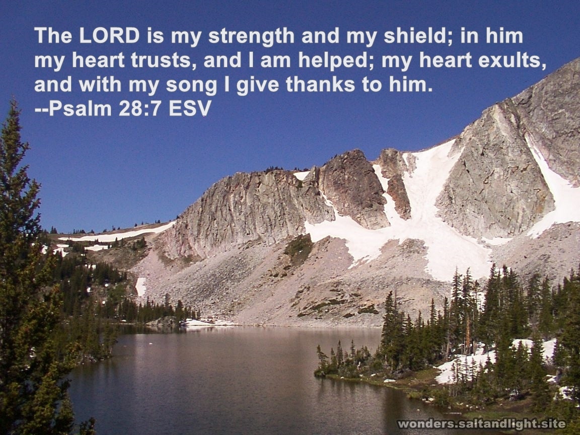 The LORD is my strength and my shield; in him my heart trusts, and I am helped; my heart exults, and with my song I give thanks to him. --Psalm 28:7 ESV